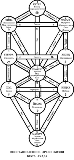 «Некто, от кого никоим образом нельзя было ожидать подобной выходки, решил «усовершенствовать» Древо Жизни, перевернув Змея Мудрости вниз головой! Но ему даже не удалось сделать свою схему симметричной: жалкие остатки его здравого смысла взбунтовались против такого вопиющего заблуждения. Единственное, что ему удалось, — это лишить Магический Алфавит всякого смысла и тем самым продемонстрировать, что в действительности он никогда и не понимал его по-настоящему» [1].