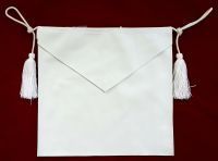 Запон Посвященного, или Ученика, изготовлен из белой овчины-мерлушки и не несет каких-либо украшений. Ширина его составляет от 14 до 16 дюймов, длина — от 12 до 14; напуск треугольный. Запон Подмастерья точно такой же, за исключением двух голубых розеток в нижней части. Запон Мастера, имея те же размеры, подбит и оторочен голубым, причем ширина оторочки не превышает двух дюймов; добавлены серебряные кисти и третья розетка на клапане. Трудно вообразить что-либо проще и в то же время прекрасней, изысканней этого сочетания голубизны, белизны и серебра; взыскательный взор предпочтет его даже великолепию гроссмейстерского облачения. Никаких иных украшений не позволяется, за исключением, разве что, эмблем должностей, которые могут вышиваться золотом или серебром у настоящих и прошлых офицеров в центре запона[3]