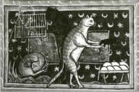 - Известно, что в ряде мифологических традиций образ кота, кошки выступает как воплощение божественных персонажей либо их атрибутов. Так, в русской фольклорной традиции, например, в сказке М.М. Коргуева «Остров золота» кошка осмысляется как чудесный помощник героя. В качестве такового этот зооморфный персонаж трактуется и в древнерусской литературе: «Нои же помолися Богу и прысну лютый зверь, выскочиста из ноздри его кот и котка и скочивши удависта диявола мышью и не сбыстся дияволе злохитрство» [2].