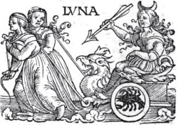 С Луной связана и другая греческая богиня, дочь Зевса Артемида, чей облик богини-охотницы включал в себя также некоторые обоеполые черты.
