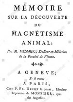 В Париже Месмер поселился в доме на Вандомской площади. Посольство Вены помогло ему создать практику, которая за короткий период времени стала очень популярной и успешной. Он принимал больных из высших кругов общества и магнетизировал их за высокую плату. В 1779 году Месмер написал 88-страничный трактат об открытии животного магнетизма Mémoire sur la découverte du magnétisme animal («Записки об открытии животного магнетизма»), в котором сформулировал 27 своих главных тезисов. Согласно Месмеру, каждое живое существо обладает животным магнетизмом определенной силы. Будучи сыном эпохи Просвещения, он стремился найти своим способностям рациональное объяснение и отвергал все мистические концепции. Месмер предполагал, что открытые им флюиды, подобно электричеству, также имеют полюса, токи, разряды, проводники, изоляторы и аккумуляторы. Его baquet, инструмент, с помощью которого он концентрировал флюиды, представлял собой имитацию лейденской банки.