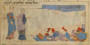Начиная с XI века на изображениях Моисея часто присутствуют похожие на рога лучи, отходящие от головы. Именно так Моисей изображен на иллюстрации в «Изложении Шестикнижия» англосаксонского монаха Эльфрика Грамматика и в Евангелиарии аббатисы Уты (ок. 1025 г.). Подобные изображения обычно характерны для Моисея, уже получившего Десять заповедей на горе Синай, хотя на некоторых изображениях он рогат, еще находясь в Египте (например, в Псалтыре Уильяма Де Бреля, ок. 1250 г.). Поводом для этого стал следующий библейский текст: