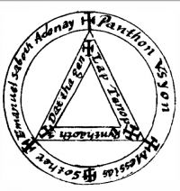 По периметру треугольника указываются греческие имена Тетраграмматон, Премиуматон и Анафаксетон и внутри треугольника имя архангела Михаэля (см. рисунок), чья работа заключается в том, чтобы контролировать демонические и другие несбалансированные силы. Это относится к энергиям, которые Маг призывает в треугольник.