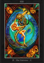 На этом аркане изображена одухотворенная Вселенная, искупленная Земля, то есть — Торжество завершенной Великой Работы. Он символизирует переход рассматриваемой ситуации в осязаемую форму.