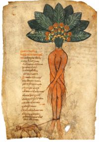 «Иные зовут еще мандрагор circeon; это растение бывает двух видов: белое (считается, что оно мужского рода) и черное, женское… Когда копают (белый мандрагор), стараются отворачиваться от ветра: сначала вокруг растения мечом проводят три круга, а затем корень выкапывают, обратив взор на запад».